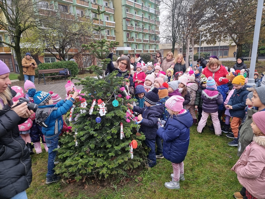 Ének, móka és kacagás. A széchenyivárosi óvodások a Mikulással együtt díszíthették fel a városrész karácsonyfáját.
